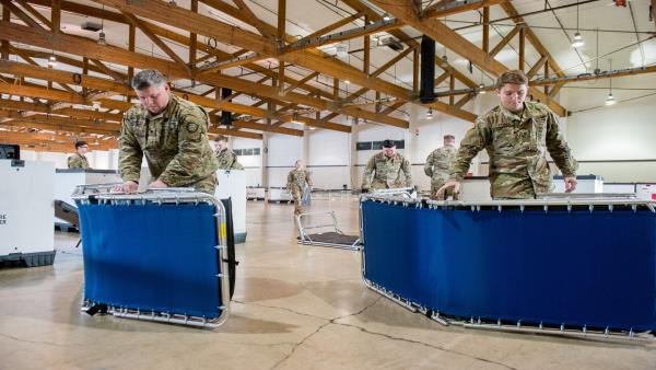 كذلك تزايدت أعداد المطالبين للجيش الأميركي بتقديم مساعدة، إذ ظهر الكثير من حكام الولايات والبلديات، في مدن أصابها الفيروس، على شاشات التلفزة لدعوة وزارة الدفاع إلى مساعدتهم. وقال محافظ نيويورك بيل دي بلاسيو، على شاشة “أن بي سي” الأحد الماضي، إن “لدى الجيش قدرة طبية ضخمة مخصصة لوقت الحروب. يمكنهم تولي أي وضع. يجب إرسال كل الطاقم الطبي إلى مناطق تتعرض لأزمة كبيرة، مثل نيويورك، فوراً”. يشار إلى أن القوات المسلحة يمكنها إقامة مراكز قيادة، ونقل الأطباء والممرضين والمواد الطبية بسرعة داخل البلد. وكان رئيس أركان الجيوش الأميركية الجنرال مارك ميلي، قد أعلن أن الجيش نقل مستشفيين عسكريين ميدانيين إلى نيويورك وسياتل، ما يرفع قدرة كل مدينة على الاهتمام بنحو 250 مريضاً إضافياً، مشيراً إلى أنه جُهِّزَت مستشفيات حربية نقالة، على أن تُنشَر في المناطق المنكوبة قريباً.
