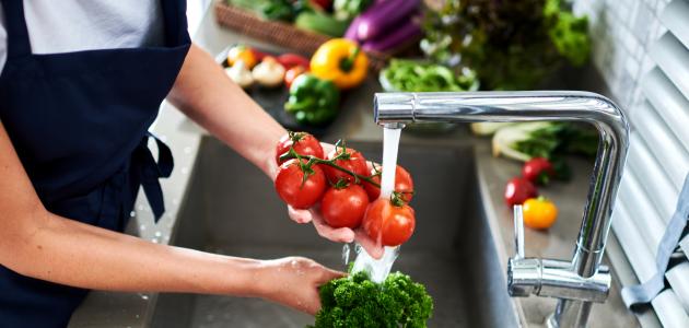 - يجب شطف الخضروات بالماء الآمنة والصالحة للشرب، وذلك باستخدام مصفاة، لتساعد على سرعة التخلص من الشوائب العالقة بالخضروات، وغسل أكثر من نوع في الوقت نفسه، بعدها يجب التخلص من المناطق التالفة في الخضروات باستخدام سكين نظيف.