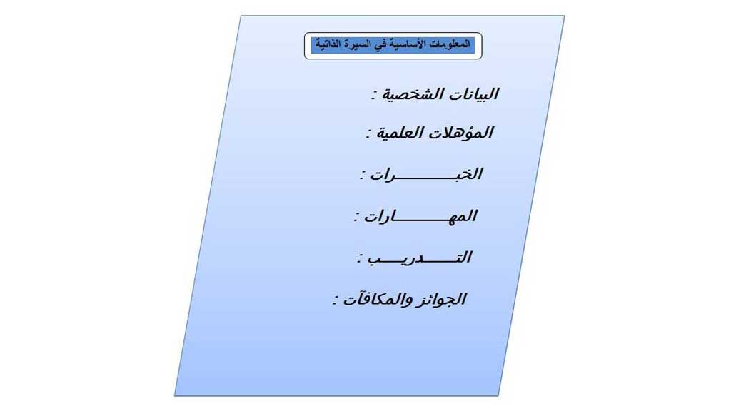 وتحتوي السيرة الذاتية على أمور عدة وهي :