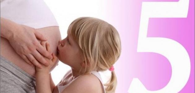 الشهر الخامس هو بداية للثلث الثاني من الحمل، ويبدأ هذا الشهر من الأسبوع الثامن عشر حتّى الأسبوع الواحد والعشرين من الحمل، وفي هذه الفترة يزداد حجم بطن المرأة الحامل ويصبح أكثر وضوحاً، وذلك بسبب زيادة حجم الجنين ونموه بشكلٍ سريع، وتعتبر هذه الفترة من الحمل من أهمّ الفترات لنمو الجنين بشكل سليم، لذا يجب على المرأة الحامل المحافظة على نظام غذائها الصحي، وتناول المكمّلات الغذائيّة، وحبوب الحديد بعد استشارة طبيبها.