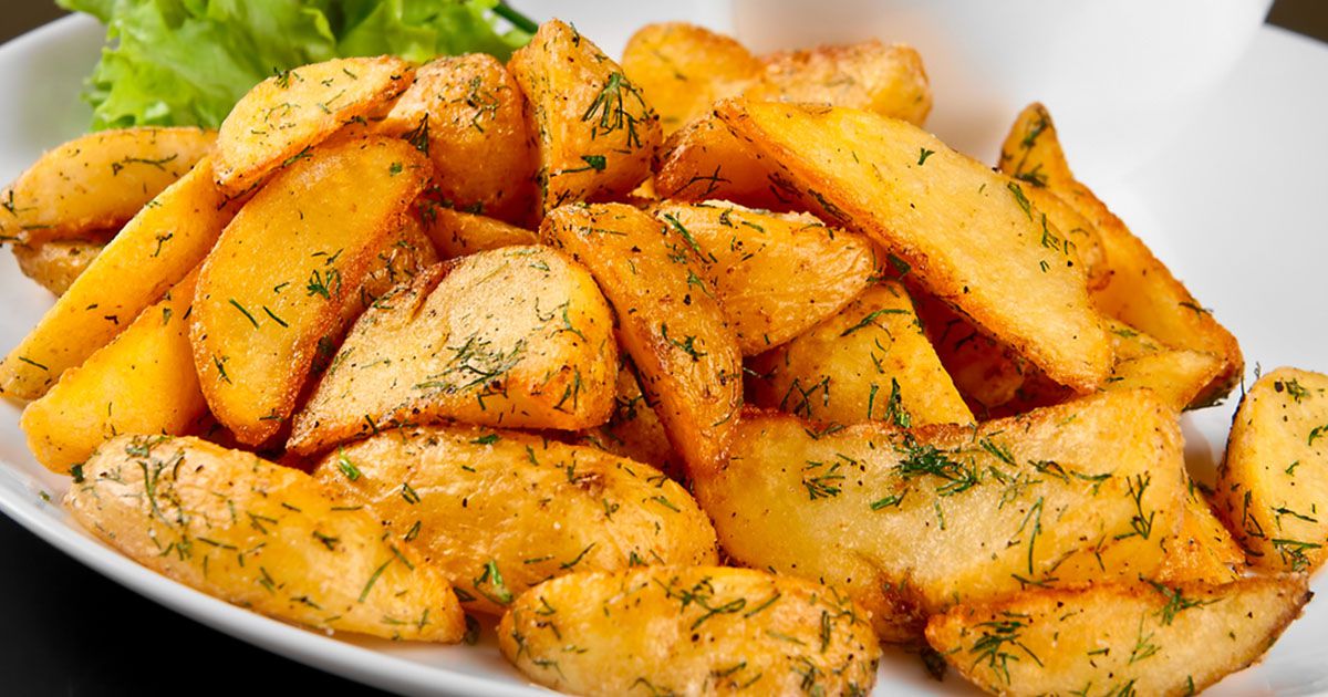 4- أخرجي الصينية من الفرن. قدّمي البطاطس ساخنة. ألف صحة!