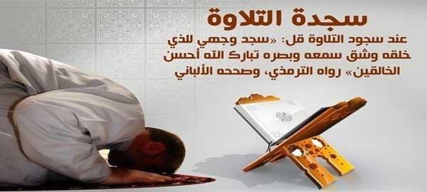 يَعْتَبِرُسُجُودُالتِّلَاوَةِ من الأمور الهامة عند قراءة القرآن في الصلاة أو خلال التلاوة حيث لا يختلف سجود التلاوة في هيئته و تأديته عن سجود الصلاة المعتاد الذي يؤدى في صلواتنا الخمس حَيْثُيَقُومَالْعَبْدُالْمُسْلِمُ بعد قراءة الآيات التي يتوجب فيها تأدية سجدة التلاوة ان يسجد لله و يقول اثناء سجوده ” سبحان ربي الأعلى، سبحانك اللهو ربنا و بحمدك، اللهم اغفر لي ” و كان الرسول صلى الله عليه و سلم يقول في سجدته ” سجد وجهي للذي خلقه و شق سمعه و بصره، بحوله و قوته ” و كان رضي الله عنه يقول ايضا اثناء سجدته ” اللهم لك سجدت، وبك امنت، و لك اسلمت، انت ربي، سجد وجهي للذي شق سمعه و بصره، تبارك الله احسن الخالقين ” و كان اشرف المرسلين يردد ايضاََ في سجوده ” اللهم احطط عني بها وزا، و اكتب لي بها أجراََ، و اجعلها لي عندك ذخرا ” و يرجع هذا الدعاء للشخص الذي جاء للرسول و قال للرسول الكريم انه شاهد نفسه في منامه يصلي الي اصل شجرة فقرأ السجدة و سجد فسجدت الشجرة لسجوده فسمعها تقول هذا الدعاء حيث جاء ابن عباس و قال انه سمع رسول الله صلى الله عليه و سلم يقرأ في سجوده مثل الذي اخبره به هذا الرجل في منامه،كيف تؤدى سجدة التلاوة .