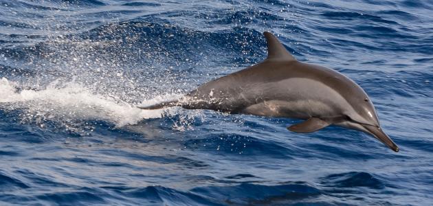يتميز الدلفين بكونه الحيوان المائي الأكثر جمالاً، حيث يمتاز بعيشه في المياه الدافئة، ومن صفاته: امتلاكه لجسمٍ نحيلٍ لونه أزرق، وامتلاكه لزعانف ظهريةٍ على طول جسمه، كما يعتبر ذكر الدلفين أكبر من الإناث، قد يصل طوله لحوالي 1.8 متر، أمّا وزنه فيصل إلى حوالي 30 كجم، وتمتاز الدلافين بقدرتها على السفر وحدها أو في مجموعات، كما تصل سرعة الدلفين لما يُقارب 56 كم في الساعة، وتتغذى الدلافين على الأسماك الطائرة،[٣] وتستطيع الدلافين تحديد مكان هذه الأسماك من خلال الاستماع لصوت صدى هذه الأسماك، كما تمتاز الدلافين بقدرتها على التحدث مع بعضها البعض، عن طريق الصفير والنداء.[٤]