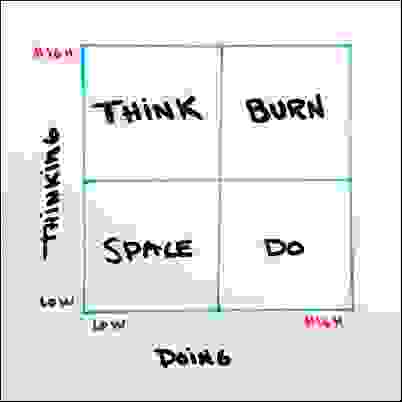 يتحرَّك الأشخاص الناجحون بحرية بين هذه المربعات الأربعة. إنَّ تحقيق النجاح في بعض الأحيان أمرٌ سهل؛ ولكن إذا كنت ترغب بالحفاظ على هذا النجاح على مدى سنوات، فيتعيَّن عليك التقاط طفاية حرائق للتعامل مع مربع الاحتراق المهني، وزيارة المربعات الأكثر لطفاً ورقَّةً من وقتٍ إلى آخر.