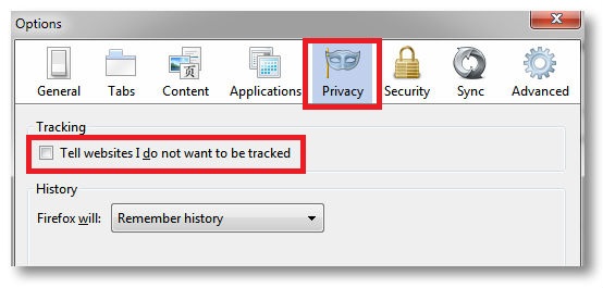 - 4- وضع علامة بجوار (Send a Do Not Track request with your browsing traffic ) . مما يحافظ على خصوصيتك و يمنع المعلنين من تتبعك بياناتك .