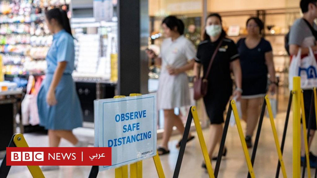 امرأة في تايلاند تشتري مشروبا من “مسافة آمنة” من أحد منافذ البيع في طريق عام