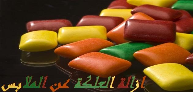 يوجد عدّة مواد يمكن استخدامها لإزالة العلكة عن الملابس، حيث يتمّ اختبار المادة على قطعة صغيرة من القماش قبل استخدامها على الملابس، وفي حال كانت جيّدةً وتمّ استخدامها، فإنّه يجب غسل الملابس بعد تطبيقها، ومن هذه المواد ما يأتي:[٣]