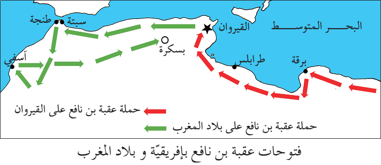 عقبة بن نافع الفاتح لبلاد المغرب العربي ولذي اسشهد على يد البيزنطيين اثناء عودته من المغرب حتى جاء حسان بن نعمان ليكمل مسيرة عقبة وقد قاتل الجيش البيزنطي و اوسع من انتشار الاسلام في المغرب وحِرْصٌعَلَىنُشَراللُّغَةَالْعَرَبِيَّةَبَيْنَسُكَّانِهَا الاصليين تم نشر الاسلام في كافة المغرب بعد ذلك على يد موسى بن نصير و اجتاح الاسلام بعد ذلك مدينة المغرب بأكملها .