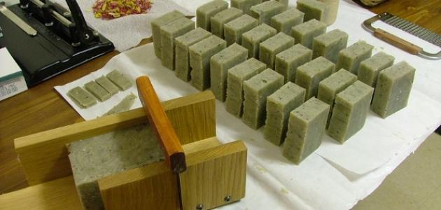 - إزالة الصابون من القالب عند تصلّبه، وتقطيعه إلى قطعٍ صغيرة.