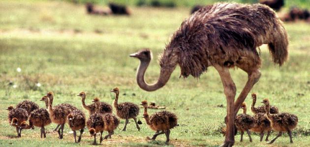 ” النعامة ” تتكاثر بالبيض مثل سائر الطيور , وتتناوب هي وذكر النعام في احتضان البيض , وتزن بيضة النعامة 1 – 1.5 كيلو غرام , وتفقس بعد خمس أسابيع أو ستة أسابيع بعد وضعها .