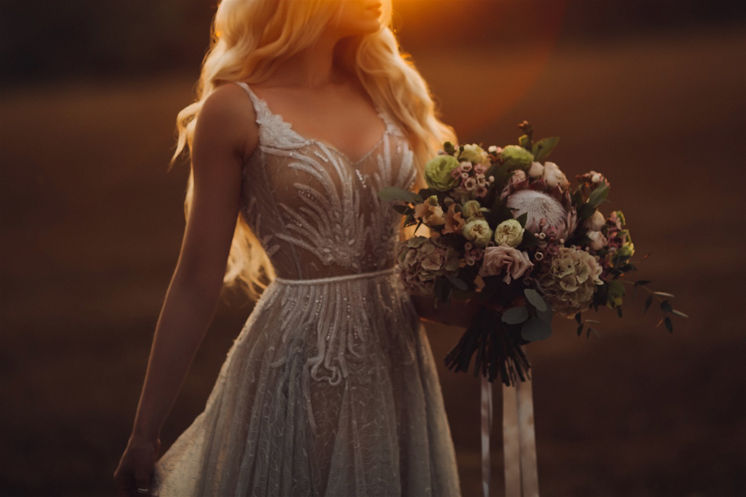 إعتدنا مع المصممة فيرا وانغ Vera Wang على تصاميم فساتين الزفاف الغريبة من حيث الشكل والألوان الألوان غير المتوقعة وغير الاعتيادية. ومن مجموعة ربيع 2020 اخترنا لك ثوباً ألوانه ترابية حيث نلاحظ قماش التول البني والزيتي، في حين نرى قطع الأزهار التي زينت الفستان ملونة بالبني والبيج المائل إلى النيود. إن تصميم غريب وجريء يليق بصاحبة الشخصية المتجددة التي تحب كسر القواعد والعادات.