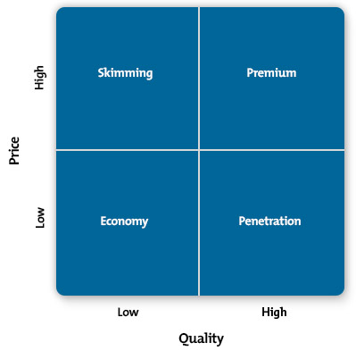 تُعَدُّ استراتيجية التسعير وسيلةً لتحديد السعر الأمثل لمنتجٍ ما أو خدمةٍ ما. وتوضح مصفوفة استراتيجية التسعير أربعاً من أبرز الاستراتيجيات الشائعة التي تربط السعر بالجودة. تتضمن العناصر الأربعة للمصفوفة:
