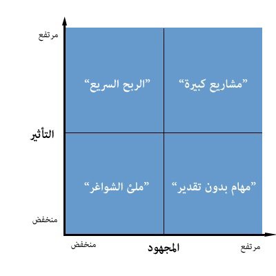 ومن هنا تأتي فائدة مصفوفة الأعمال ذات الأولوية، حيث أنّه بإمكان هذا المخطط البياني البسيط أن يساعدك على اختيار الأنشطة التي عليك إعطاؤها الأولوية، أو الأنشطة التي ينبغي عليك تجنُّبها إن كنت تريد تحقيق أقصى استفادة من وقتك ومن الفرص المُتاحة أمامك.