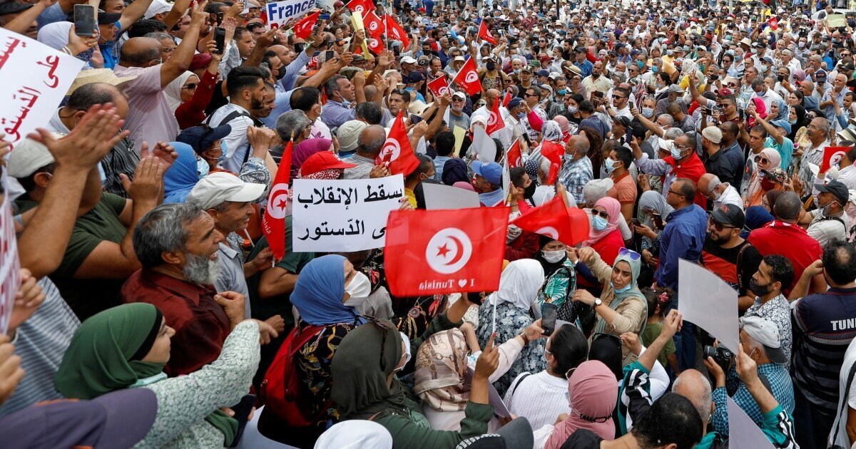 وتأتي هذه الاحتجاجات -وهي الأكبر حجما منذ الإجراءات التي اتخذها سعيد قبل نحو شهرين- عقب دعوات من نشطاء تونسيين إلى الاحتجاج رفضا لما يسمونه بالانقلاب على المؤسسات الشرعية وعلى دستور البلاد.