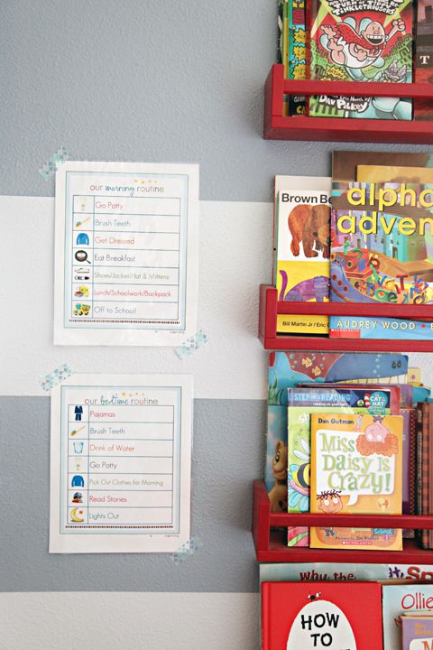 ساعد الأطفال الصغار على وضع جدول يتضمن المهام الصباحة وجدول آخر يتضمن المهام التي يجب عليهم القيام بها قبل التوجه إلى السرير بحث تكون مثل هذه الجداول على شكل قائمة تحقق تُعلق على الجدار.