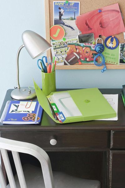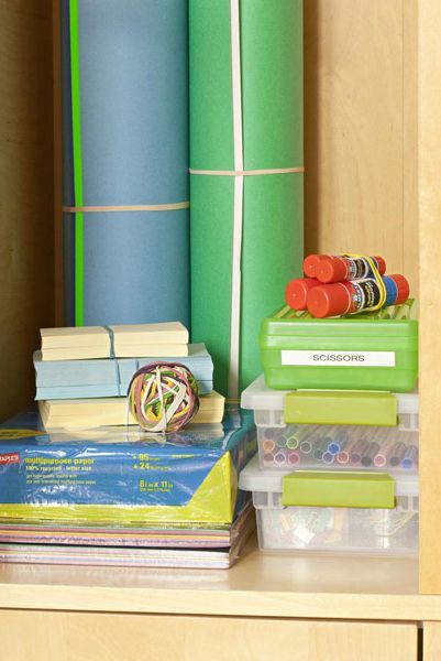 احتفظ بأغراض المدرسة في خزانةٍ خاصة بدلاً من بعثرتها في الممرات والغرف.