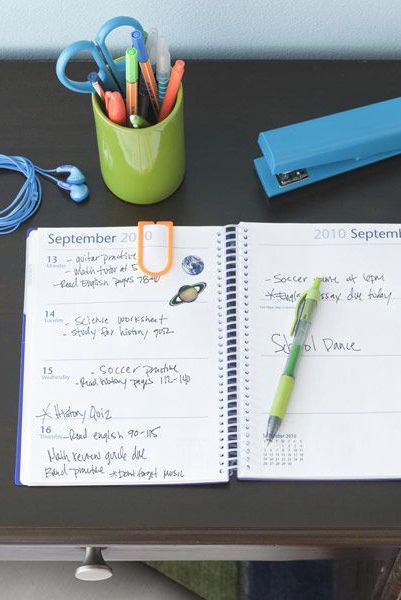 يوصي الخبراء بالتخطيط مسبقاً للمهام المتوقعة خلال الأسبوع لتعليم الأطفال مهارة إدارة الوقت. فقبل أن يبدأ الأطفال بأداء واجبهم المنزلي وجَّههم نحو مراجعة التقويم الدراسي الذي يتضمّن المهام الموكلة إليهم خلال الأسبوع وتقويم عملهم وترتيب حقيبة المدرسة بما يتناسب مع تلك الخطط. ومن ثمَّ وضع الأوراق المتعلقة بالواجب المُؤدى في الشنطة بعد الانتهاء منه بحيث لا ينسى الأطفال أي شيءٍ في المنزل.