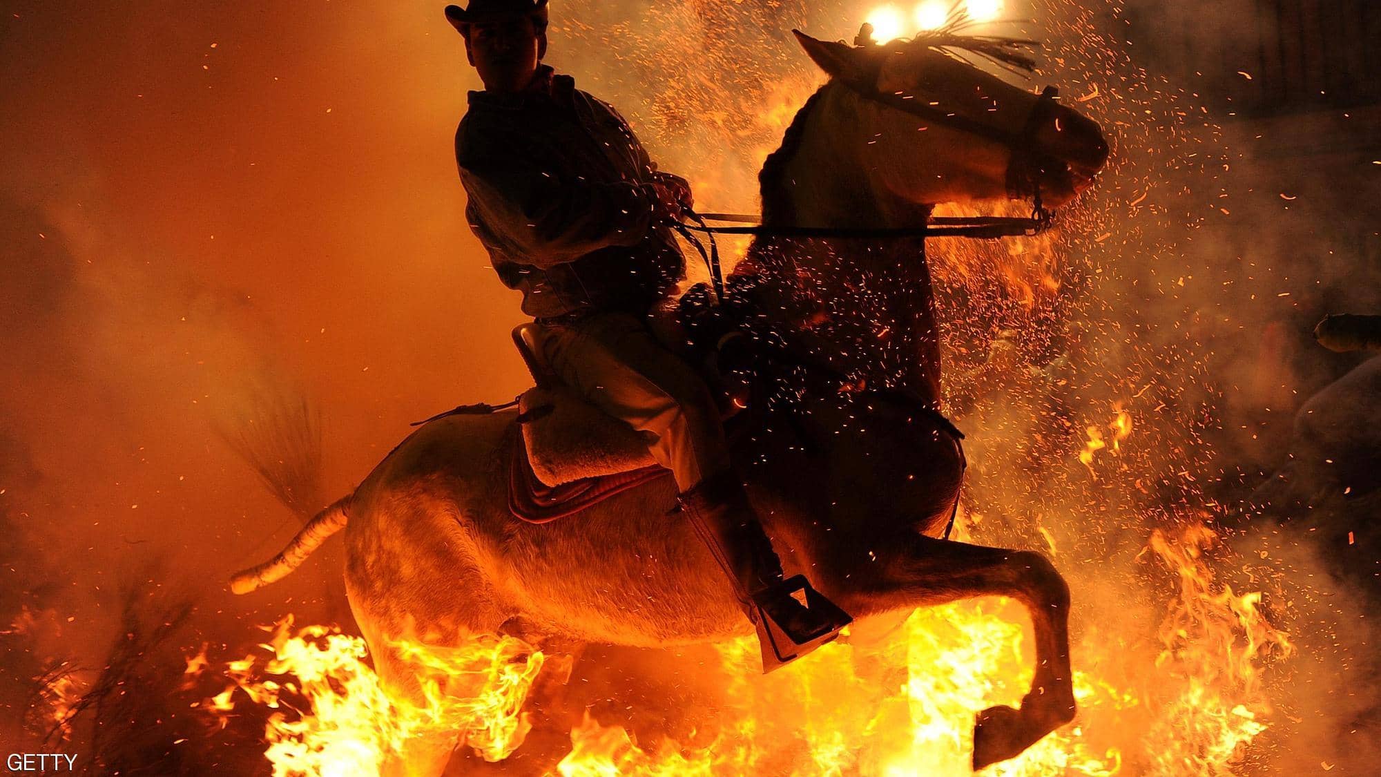 في قرية سان بارتولومي دي بيناريس في إسبانيا يقام المهرجان كل عامالمهرجان يقام عشية يوم القديس أنتوني، شفيع الحيوانات في 16 ينايرلا يُعرف بالضبط أصل هذا التقليد الذي يعود إلى العصور الوسطىيجتمع سكان البلدة الصغيرة التي تضم 600 شخصا لتنظيم الاحتفاليتم إعداد المنازل وتدريب الخيول المستخدمة على النار حتى لا يشعروا بالخوف في الليلتضيء النيران في الشوارع الضيقة للقرية قبل الاحتفاء بالتقليديقوم أكثر من مائة خيل من جميع أنحاء منطقة قشتالة بالقفز على النيران لأكثر من ساعتينيتم ركوب الخيول من خلال النيران في الليلة التي تسبق تكريم الحيواناتبحسب هذا الاعتقاد يتم إبعاد الحسد والشر والأمراض من شوارع المدينةولا يقتصر تقليد المباركة على الخيل فقط بل على حيوانات أخرى