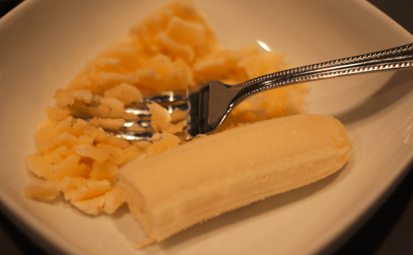 - يتم تقشير الموز وتقطيعه قطع صغيرة وهرس الموز بشوكة جيدا ويتم التأكد من عدم وجود قطع كبيرة حتى لا يصعب على الطفل ابتلاعها.