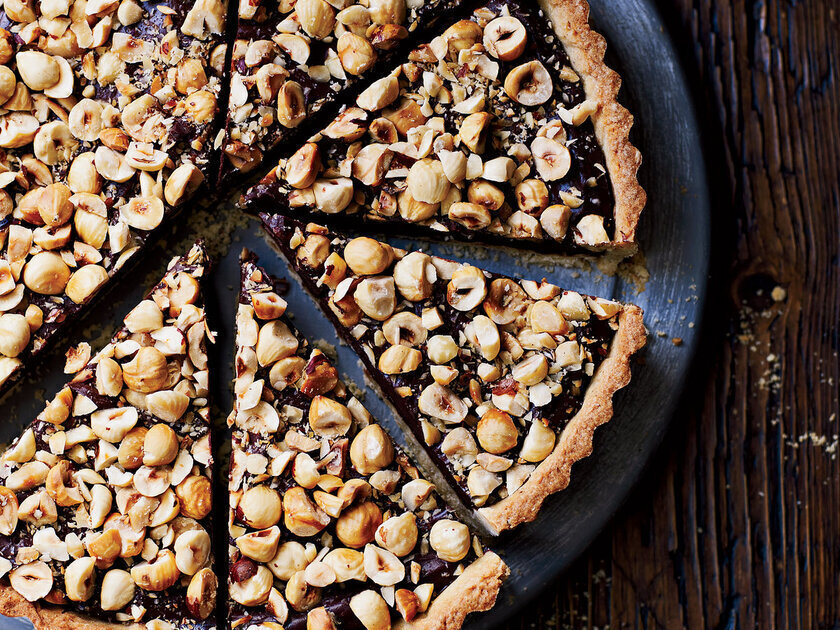 مع قشرة البندق المقرمشة وملء فطيرة ناعمة ودسمة بالشوكولاتة اللذيذة، يتكون تارت مثير للإعجاب ويتطلب القليل من الجهد فقط، لاسيما غذا استخدمت عجينة تارت جاهزة، وستكون هذه حلوة جيدة جدا بعد الغذاء، أو يمكنها أن تكون إفطارا لذيذا لاسيما مع كوب من القهوة الفرنسية بالبندق ، أو الشاي، أو حتى مع كوب من الصير الطبيعي الفريش مثل عصير البرتقال والليمون بالنعناع أو الكيوي .