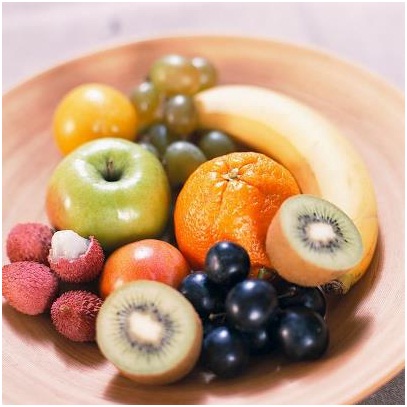 2 زبادي أكتيفيا + 3 فواكه مختلفة اللون أي فاكهة و نقطعهم ونمزجهم مع بعض.