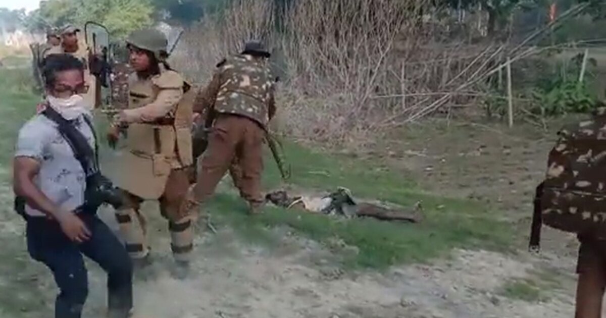 جثة فلاح مسلم ملقاة على الأرض بعد إطلاق عناصر أمن هنود النار عليه في ولاية آسام (مواقع التواصل)