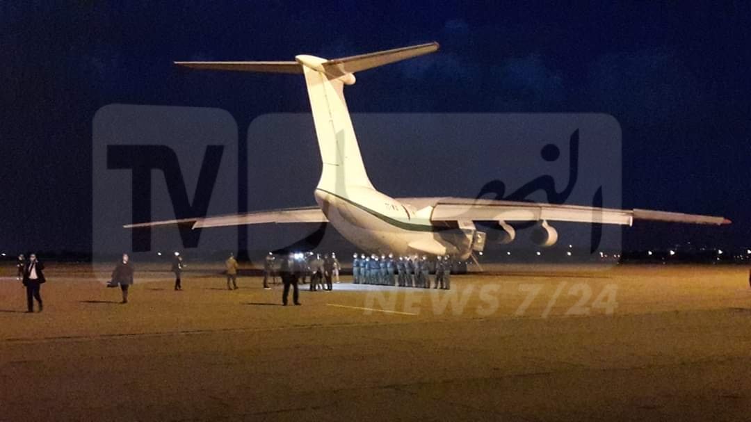 الطائرة من ونوع اليوشين رقم 8 تابعة للقوات الجوية الجزائرية تحمل معدات وأدوية مخصصة لمواجهة كورونا.