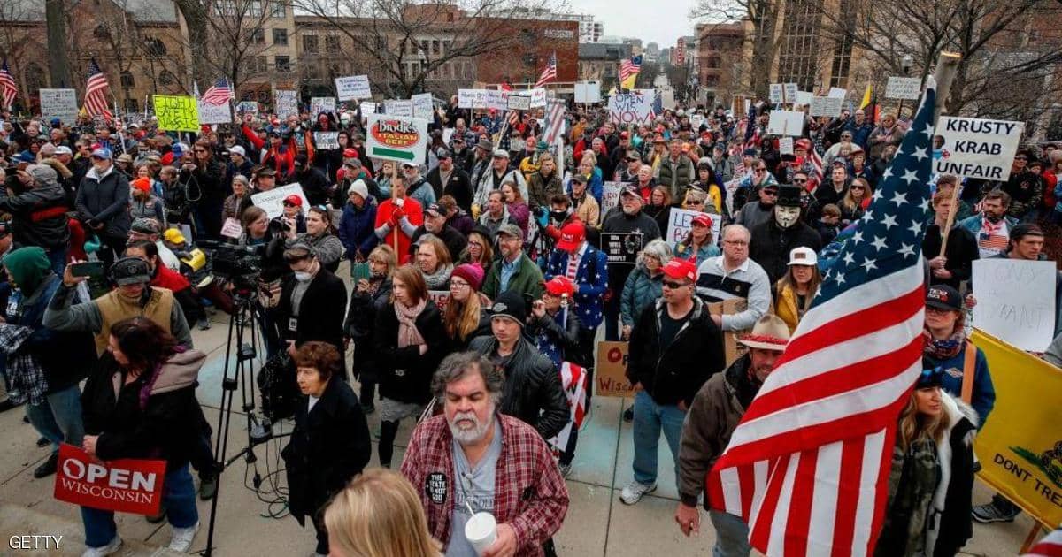 واعتمر محتجون كثيرون قبعات تدعم الرئيس دونالد ترامب ولوحوا بالعلم الأميركي ورفعوا لافتات كتب عليها “عودوا للعمل” و”افتحوا ويسكونسن الآن”، في الوقت الذي دعوا فيه حاكم الولاية لإنهاء أمر البقاء في المنازل الساري حتى 26 مايو.