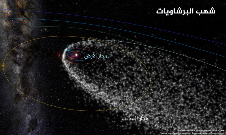 محاكاة كميات شهب البرشاويات حول الأرض في مدار مذنب سويفت-تتل
