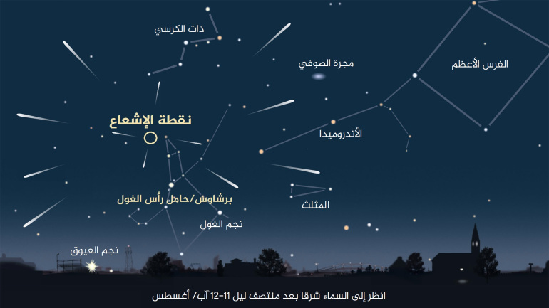 بين 11 و13 أغسطس/آب من كل عام، تنشط شهب تعرف بزخة شهب البرشاويات، نسبة إلى كوكبة برشاوس (حامل رأس الغول) النجمية، حيث يمكن رؤية الشهب تدخل الغلاف الجوي الأرضي وتتوزع في أرجاء السماء باتجاهات مختلفة.