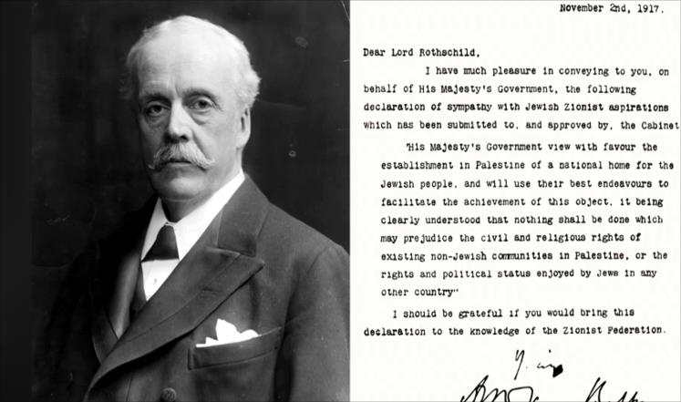 وجاء في نص الرسالة إن “حكومة صاحب الجلالة تنظر بعين العطف إلى تأسيس وطن قومي للشعب اليهودي في فلسطين، وستبذل عظيم جهدها لتسهيل تحقيق هذه الغاية”.