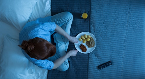صحيح ان البروتين جيد خلال النهار. ولكنه ليس كذلك قبل النوم. فهو صعب الهضم ويحتوي على الحامض الأميني تيروزين (Tyrosine)، والذي يعزز نشاط الدماغ. لذا تخطى الوجبات التي تحتوي على الكثير من البروتين قبل النوم واستبدلها بقطعة صغيرة من الجبن وبعض الكربوهيدرات الجيدة للنوم، مثل المفرقعات.