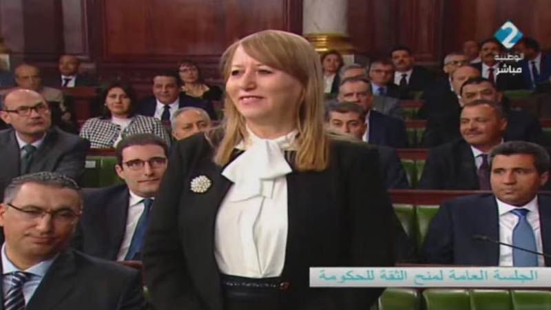 خلال مداخلته في جلسة منح الثقة لحكومته المقترحة، وأثناء تقديم فريقه الحكومي، طلب رئيس الحكومة المكلّف الياس الفخفاخ من وزيرة العدل المقترحة ثريا الجريبي، التي بدأ بها، الوقوف احتراما لأعضاء مجلس النواب.