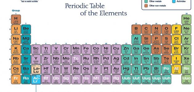 يندرج نصف قطر الذرة في الجدول في الأماكن الآتية: