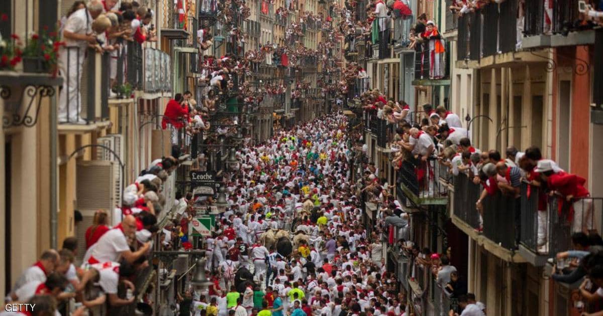 وبين السادس من يوليو والـ14 منه، تعيش المدينة عادة على وقع سباقات ثيران هائجة تتسم بالخطورة، في ظل محاولة مئات الأشخاص بزيّ أبيض وأحمر الاقتراب إلى أدنى مسافة ممكنة من هذه الحيوانات في الشوارع المرصوفة بالحصى في المدينة الواقعة في شمال إسبانيا.