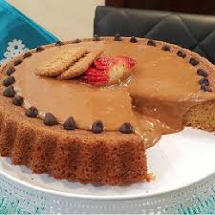 6- نصب الخليط في قالب كيك مدهون بأي مادة دهنية.