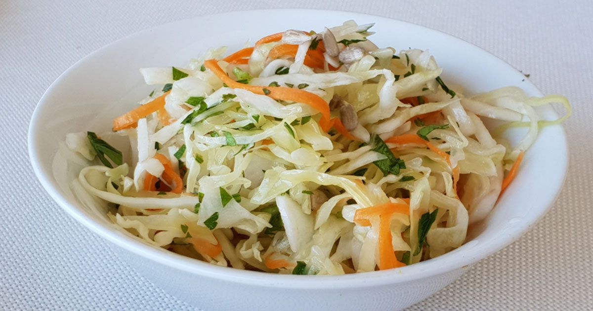 2- ضعي مزيج الملفوف والجزر في وعاء. أضيفي البقدونس.