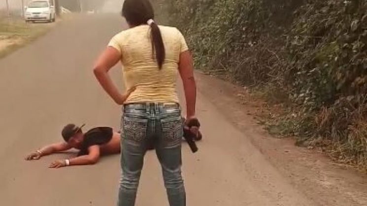 امرأة تحتجز متهماً بإشعال النيران تحت تهديد السلاح وسط حرائق الغابات- (فيديو)