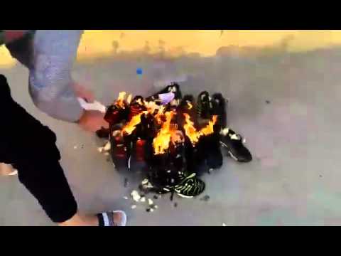 شباب يحرقون أحديتهم الرياضية الباهظة الثمن لأنها تحمل إسم الجلالة