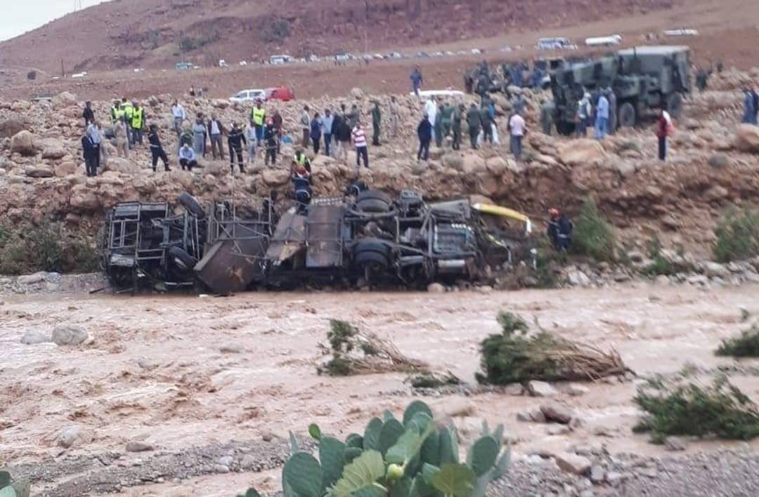 فيديو.. انقلاب حافلة بقنطرة "واد دمشان" بإقليم الراشيدية
