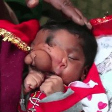 طفلة هندية وُلدت بعيب خلقي في الأنف جعل وجهها يبدو أشبه ما يكون بوجه فيل صغير..