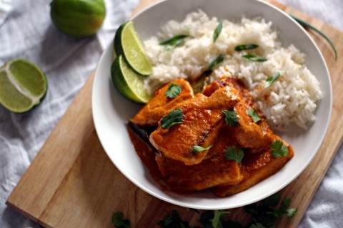 وقت التحضير :15 دقيقة وقت الطهي : 15 دقيقة عدد الاشخاص :4 المقادير 4x معلقة كبيرة زيت عباد شمس 3x معلقة كبيرة خل (عنب) 3x عدد فص ثوم مهروس 1x معلقة كبيرة جنزبيل 1x عدد بصلة (مقطعة مكعبات) 1x معلقة…
