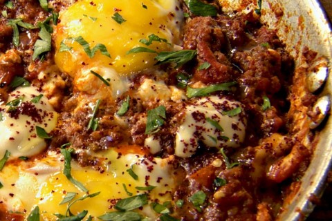 وقت التحضير :15 دقيقة وقت الطهي : 15 دقيقة عدد الاشخاص :8 المقادير 8x عدد بيضة 4x عدد فص ثوم مهروس 2x عدد طماطم 2x عدد بصلة 2x عدد قرن فلفل حامى 1x حزمة كزبرة خضراء 1x معلقة صغيرة فلفل…