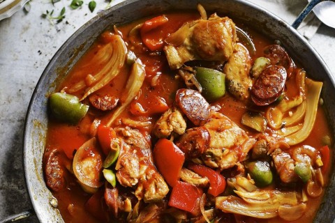 وقت التحضير :15 دقيقة وقت الطهي : 30 دقيقة عدد الاشخاص :7 المقادير 5x عدد طماطم (مفرومة أو صلصة) 2x عدد قرن فلفل حامى 1x عدد بصلة مفرومة 1x عدد فلفل أحمر حلو (مفروم) 1x عدد فلفل أحمر حلو (مقطع)…