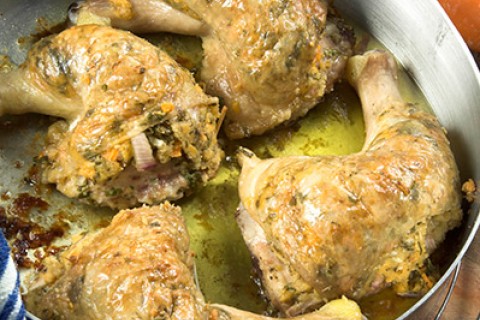 وقت التحضير :15 دقيقة وقت الطهي : 30 دقيقة عدد الاشخاص :4 المقادير 4x قطع أفخاد دجاج 1x حبة كبيرة جزر مفروم 1x حبة صغيرة بصلة مفرومة 0.5x كوب جبن شيدر مبروشة 2x ملعقة كبيرة زيتون اسود، مفروم 0.25x كوب…