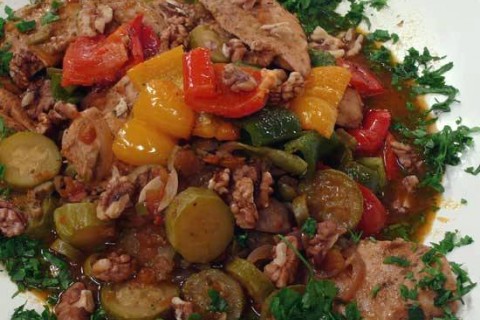وقت التحضير :20 دقيقة وقت الطهي : 30 دقيقة عدد الاشخاص :4 المقادير 3x ملعقة كبيرة زيت زيتون 1x حبة كبيرة فلفل أحمر حلو 1x حبة كبيرة فلفل أخضر حلو 1x حبة كبيرة فلفل أصفر حلو 0.25x ملعقة صغيرة فلفل…
