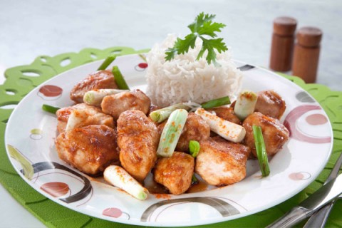 وقت التحضير :10 دقيقة وقت الطهي : 15 دقيقة عدد الاشخاص :4 المقادير 4x قطعة فيليه دجاج مكعبات متوسط الحجم 3x ملعقة كبيرة نشا 1x ملعقة صغيرة زيت ذرة 3x فص ثوم مهروس 1.5x ملعقة صغيرة خل 0.25x كوب ماء…