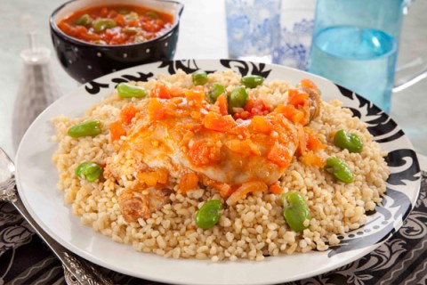 وقت التحضير :25 دقيقة وقت الطهي : 40 دقيقة عدد الاشخاص :6 المقادير 3x ملعقة كبيرة زيت 1x حبة متوسطة بصل مفروم 1x فص ثوم مهروس 1x كيلو فيليه سمك مقطع مكعبات 1x ملعقة صغيرة ملح 0.5x ملعقة صغيرة فلفل…