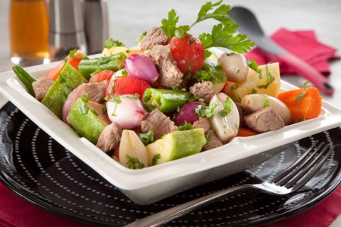 وقت التحضير :25 دقيقة وقت الطهي : 60 دقيقة عدد الاشخاص :4 المقادير 500x جرام لحم مقطع بحجم راس العصفور 3x ملعقة كبيرة زيت 10x حبة صغيرة بصل مقشر 1x حبة كبيرة بطاطس مكعبات 1x حبة كبيرة كوسى مكعبات 1x…