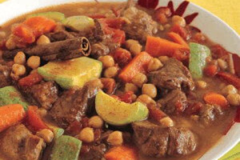 وقت التحضير :30 دقيقة وقت الطهي : 90 دقيقة عدد الاشخاص :6 المقادير 2x ملاعق طعام من زيت الزيتون 300x غ من البصل٬ مقطّعتان إلى شرائح رفيعة 750x غ من لحم البقر قليل الدهن٬ المقطّع إلى مكعّب 3x فصوص من…